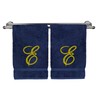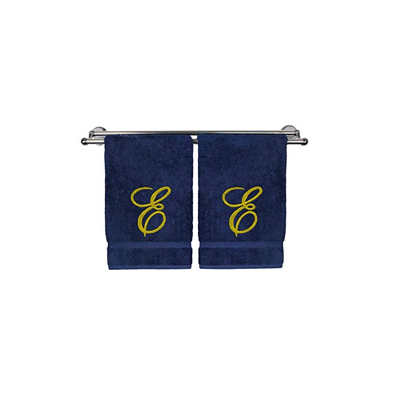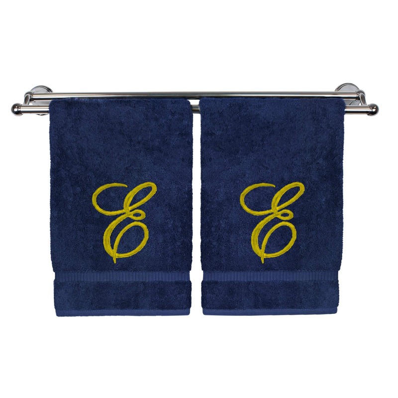 Monogrammed Washcloth Towel, Personalized Gift, 13x13 Inches - Set of 2 - Gold Script Embroidered Towel - Extra Absorbent 100% Turkish Cotton - Soft Terry Finish - Initial E Navy Towels