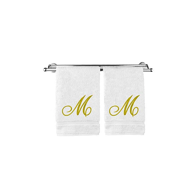 Monogrammed Washcloth Towel, Personalized Gift, 13x13 Inches - Set of 2 - Gold Script Embroidered Towel - Extra Absorbent 100% Turkish Cotton - Soft Terry Finish - Initial M White