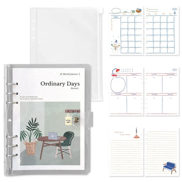 Monolike A5 Haudinary Days Diary Set Green Day - Ordinary Days Diary Set, Green day Annual Plan, Monthly Plan, Weekly Plan, Scheduler, Illustration Diary