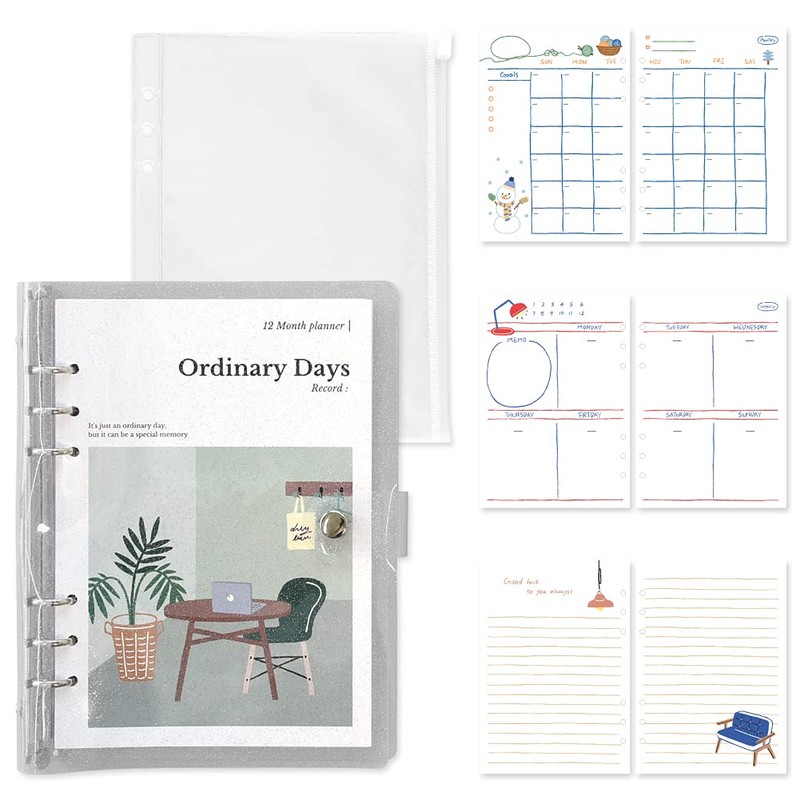- A diary component of the zipper back can be inserted into the binder, making it convenient to store stickers and receipts