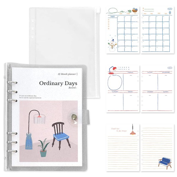 Monolike A5 Haudinary Days Diary Set Sweet Home - Ordinary Days Diary Set, Sweet home Annual Plan, Monthly Plan, Weekly Plan, Scheduler, Illustration Diary