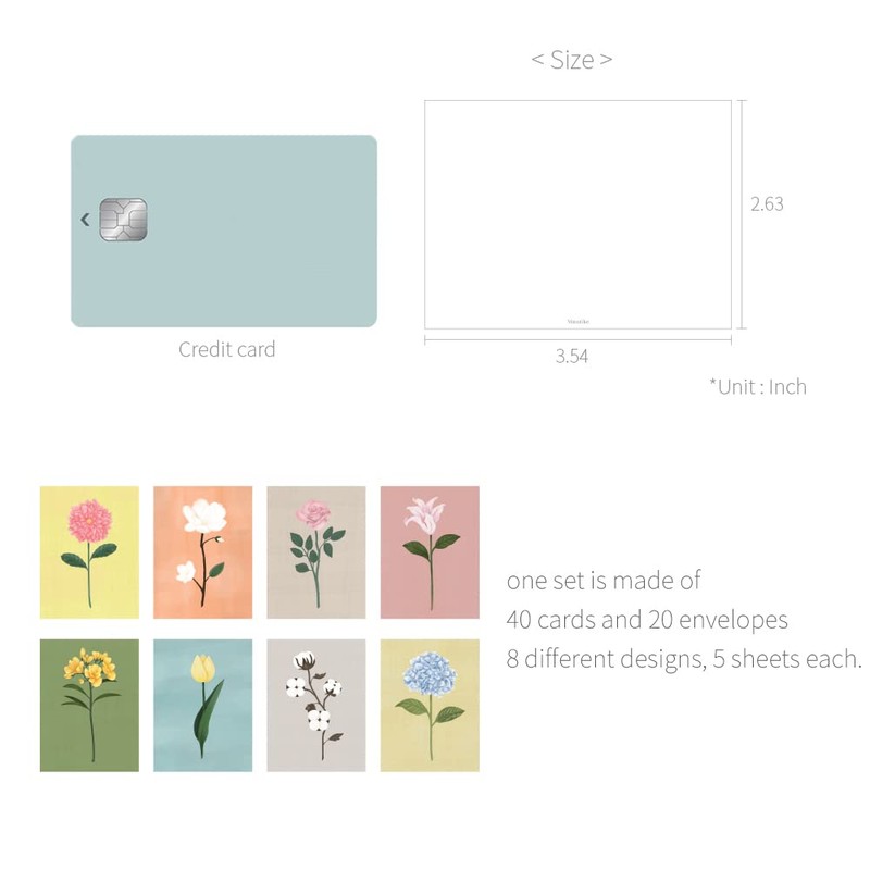 Monolike Message Cards, Mini Cardlet, The Flower Message Card, Set of 40 Cards and 20 Envelopes, Mini Size, Design Stationery, Celebration Cards