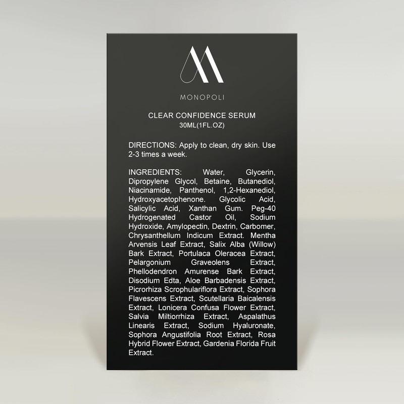 Monopoli Skin Clear Confidence BHA Serum | Achieve Clear, Balanced Skin | White Willow Bark & Sophora Flavescens | Teens and Adults with Acne-Prone Skin | Single 30ml