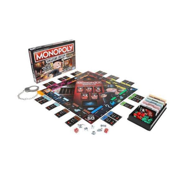 - Don't get caught. This Monopoly game includes a plastic handcuff unit that "chains" cheating players to Jail space