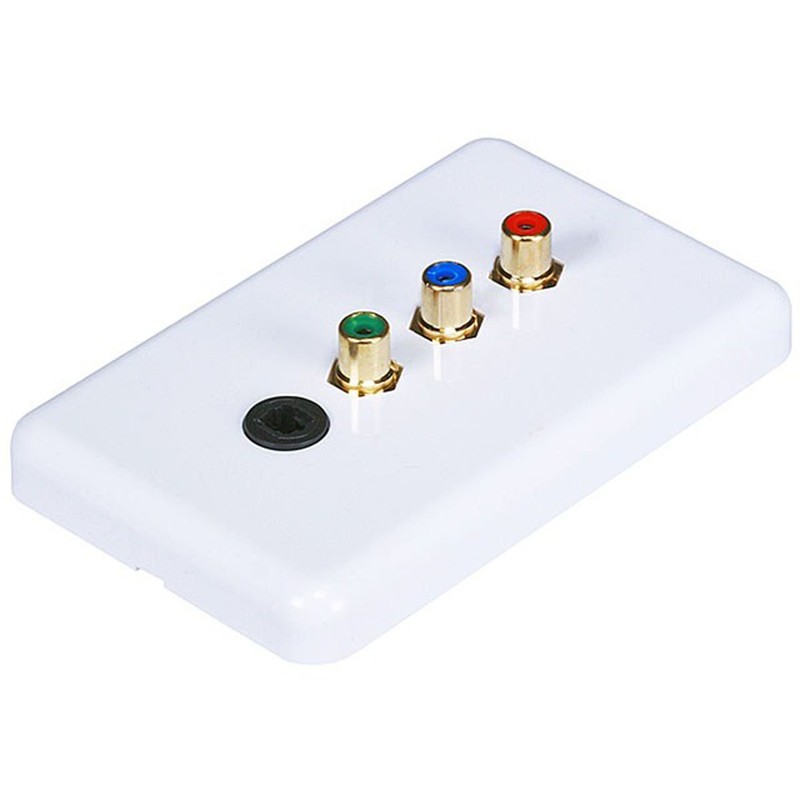 • This plate features 3 color coded RCA jacks for component video connections and an optical TOSLINK connection for audio