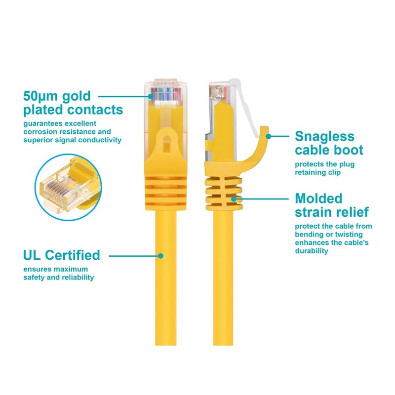 Monoprice Flexboot Cat6 Ethernet Patch Cable - Network Internet Cord - RJ45, Stranded, 550Mhz, UTP, Pure Bare Copper Wire, 24AWG, 20ft, Yellow