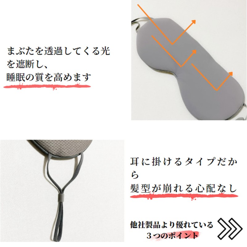 MONOW Eye Mask, For Sleeping, Cute, Light Blocking, Eye Pillow, Good Sleep Goods, For Both Hot and Cold Use, Gray