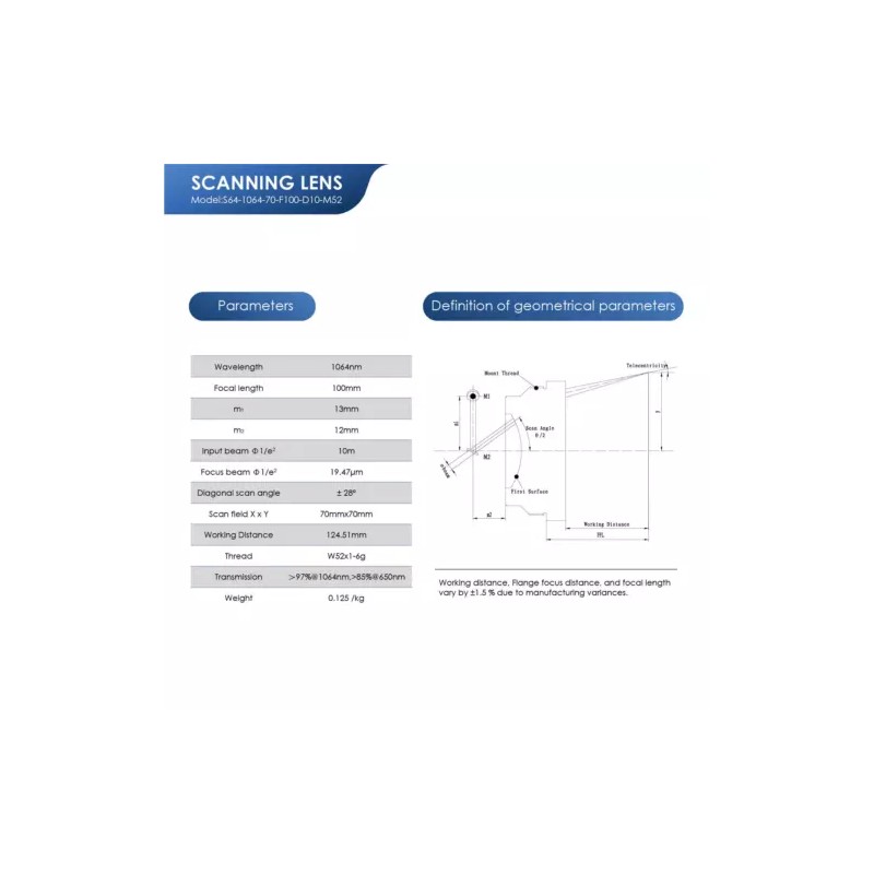 Monport F-theta M52 200x200mm /175x175mm /150x150mm /110x110mm /70x70mm Replacement Optical Scanning Lens for Fiber Laser Engraver