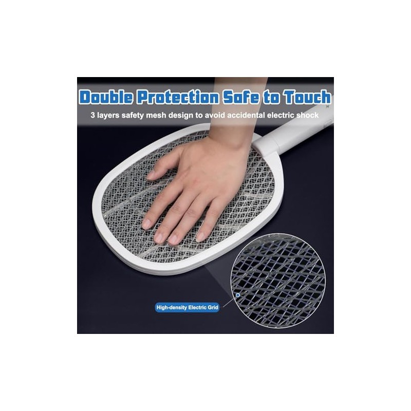 - Safe & User-Friendly Design: Equipped with a 3-layer safety mesh and an insulating plastic structure, this fly swatter prevents accidental contact with the electric grid, ensuring safe operation for you and your family