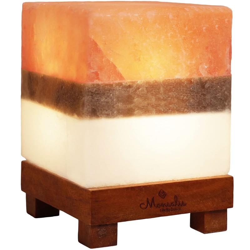 MONSALIS Dual Illumination Salt Rock lamp - Modern Square Pink White and Grey Design of Salt Lamps with dimmer, Adjustable Glow. 100% Real Large Himalayan Crystal Salt Night Light