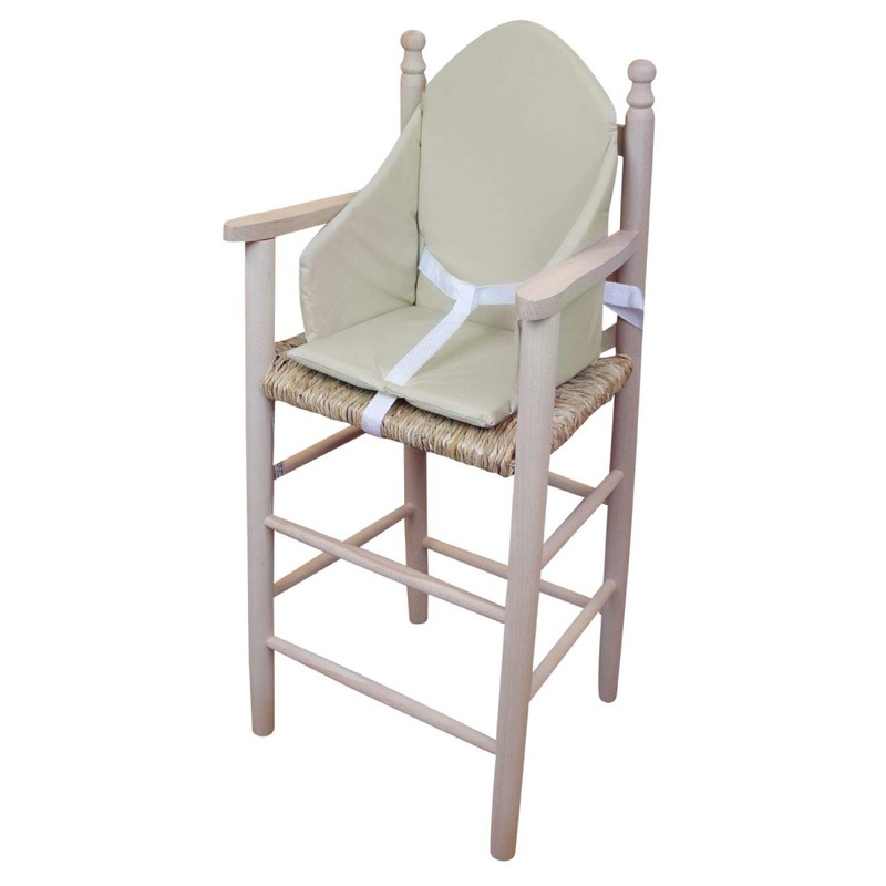 - Practical: thanks to its foam, the chair cushion is a way to give your wooden high chairs a fresh coat. It also provides additional safety with its 3-point harness. Don't be afraid of stains anymore, because the cushion can be cleaned with a wipe with the sponge.