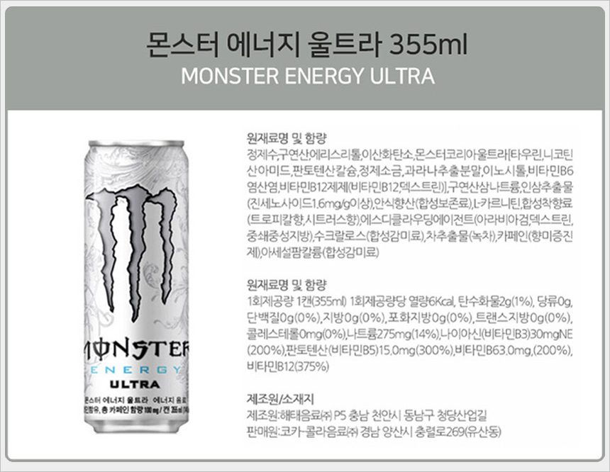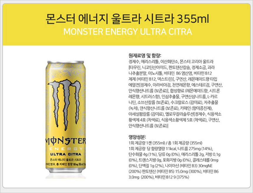 Monster 355ml (Ultra+Citra+Pipe+Zero Sugar) 10 cans each, 40 cans in total (31199477) / 몬스터 355ml (울트라+시트라+파이프+제로슈거) 10캔씩 총40캔 (31199477)