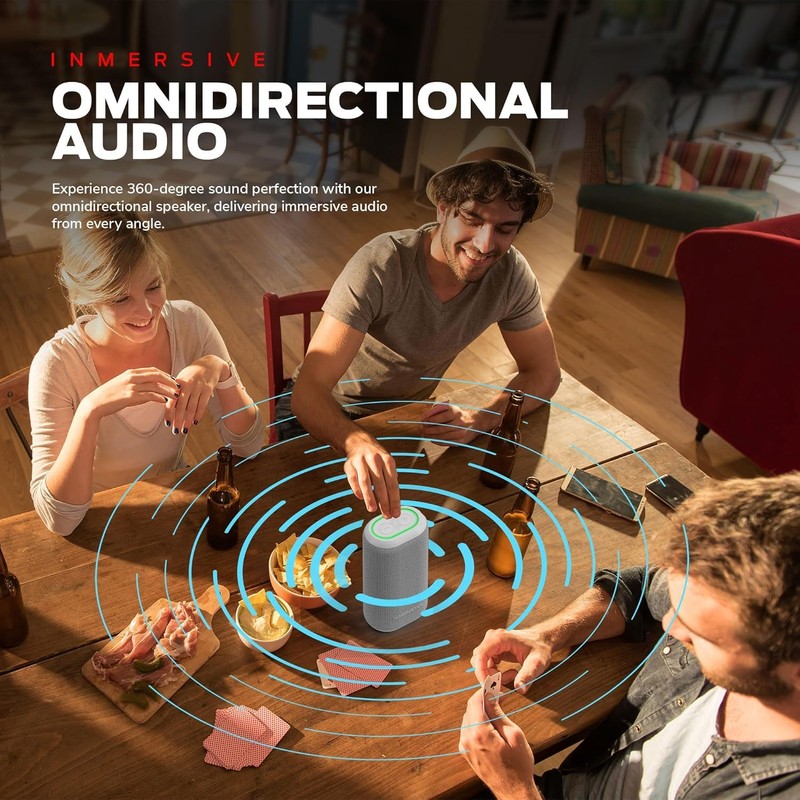 - Portable Immersive Sound: Our wireless speaker is compact in size, but loud in sound. Get breathtaking audio no matter where you are in the room with four evenly distributed speaker drivers; you'll want to take this portable speaker with you everywhere.