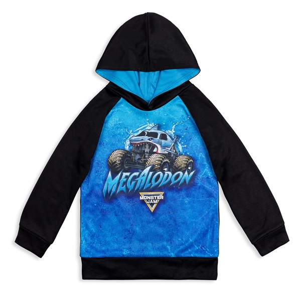 Monster Jam Sudadera con capucha de raglán con forro polar Trucks, Azul / Patchwork, 4 Años