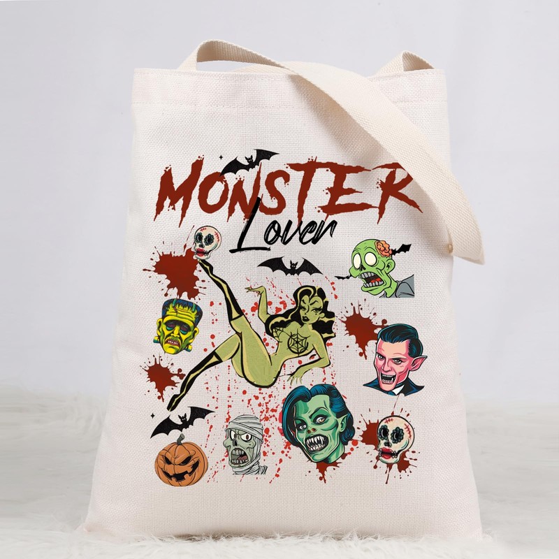 Monster Lover Tote Bag Monster Gift For Women Horror Movie Gift Spooky Season Gifts Monster Lover Shopping Bag (MONSTER Lover ca)