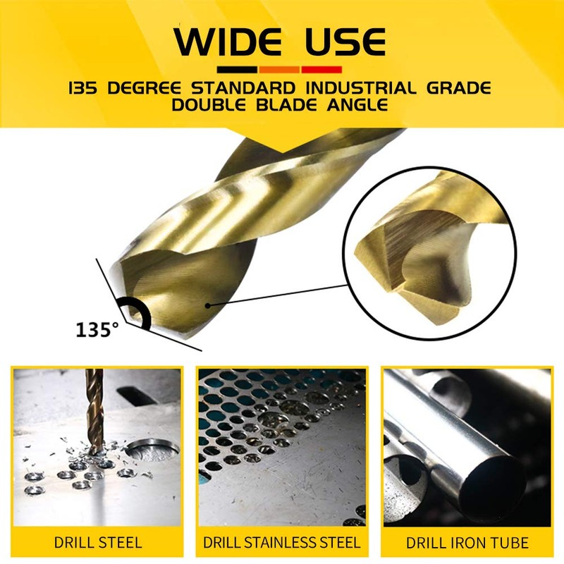 - Bits made of high speed steel with a titanium nitride coat for added durability, 100% brand new and high quality. The new packaging makes the package box stronger, not easy to loosen and break.