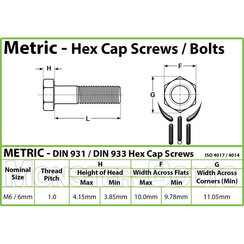 - Diameter - Thread Pitch : M6 - 1.0 (Coarse / Standard Thread)