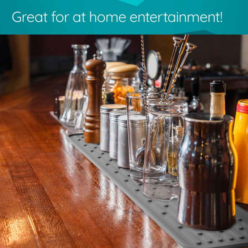 MonsterMat - Alfombrilla de silicona extra larga y estrecha para secar platos (gris, largo y estrecho (33.5 x 6 pulgadas)