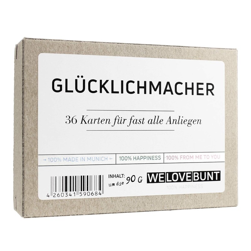 Monsterzeug Happiness Maker Box with Postcard Set, 36 Cards that Make Happy, Sayings Cards with Quotes and Congratulations for Any Occasion