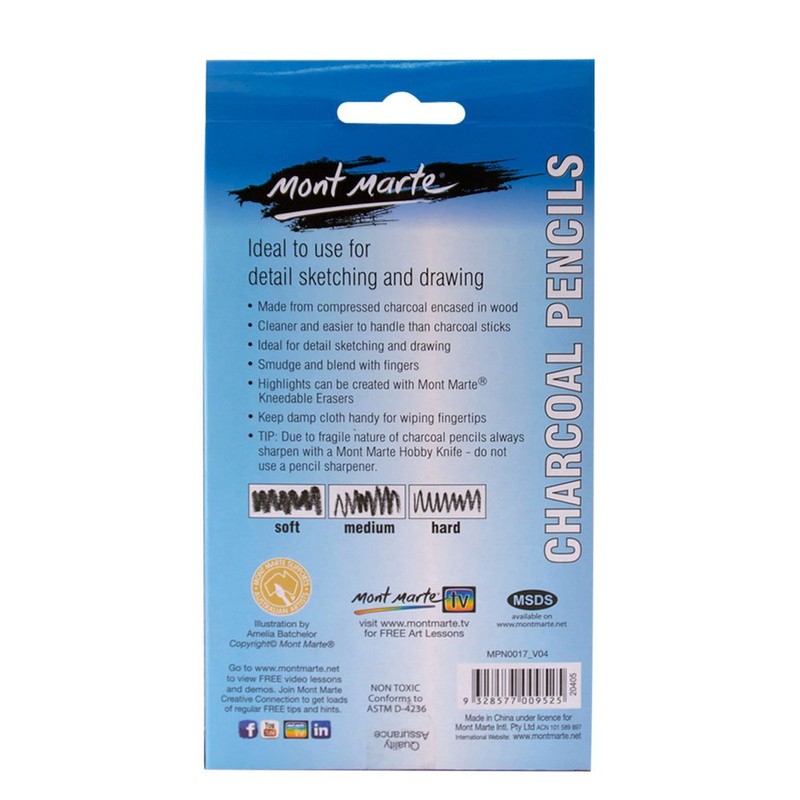 Mont Marte Charcoal Pencils 12pce