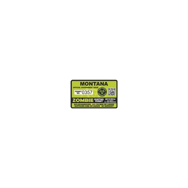 - Montana MT Zombie Hunting Permit Hunter response biohazard team unit 4" Outbreak Sticker