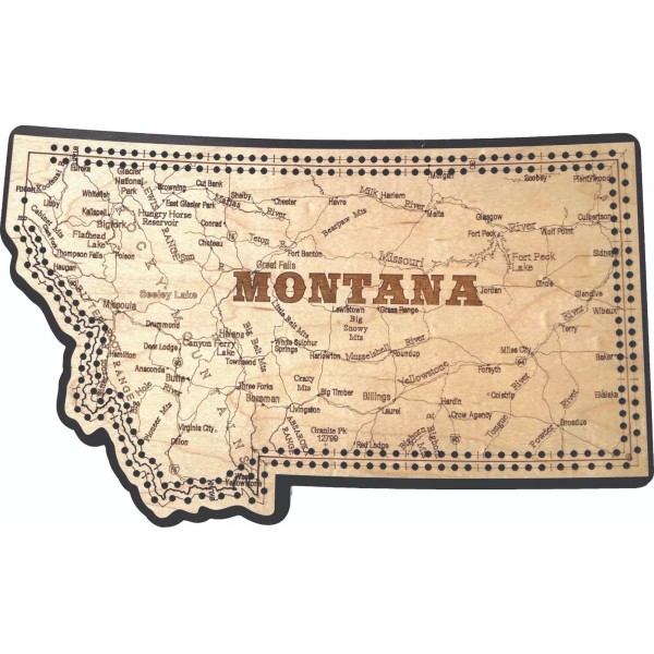 Montana State Shaped Road Map Cribbage Board