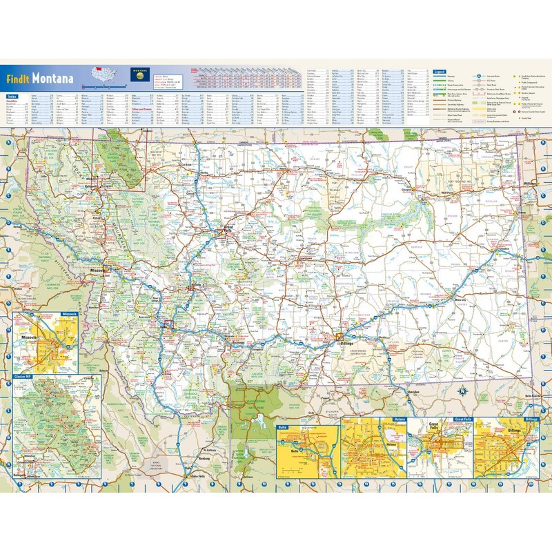 - The map also includes up-to-date inset of Glacier National Park. County and city indices make it simple to locate even the smallest town.