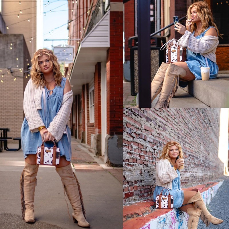 - Made from vegan leather, with upgraded hardware and a sturdy zipper, Wrangler cow print crossbody purse will be your next everyday purse.