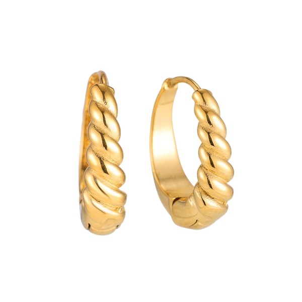 Add a stylish touch to your look with these elegant croissant hoop earrings from Beach to the City. Made from high quality stainless steel and finished with an 18K gold plating, these earrings are characterised by their unique croissant structure, which gives them a modern yet timeless charm. The medium size ensures an eye-catching presence, while the light weight ensures a comfortable feel. These earrings are the perfect accessory for any occasion, be it daily wear or special occasions. Treat yourself to a touch of luxury and style with these exquisite croissant hoop earrings.
