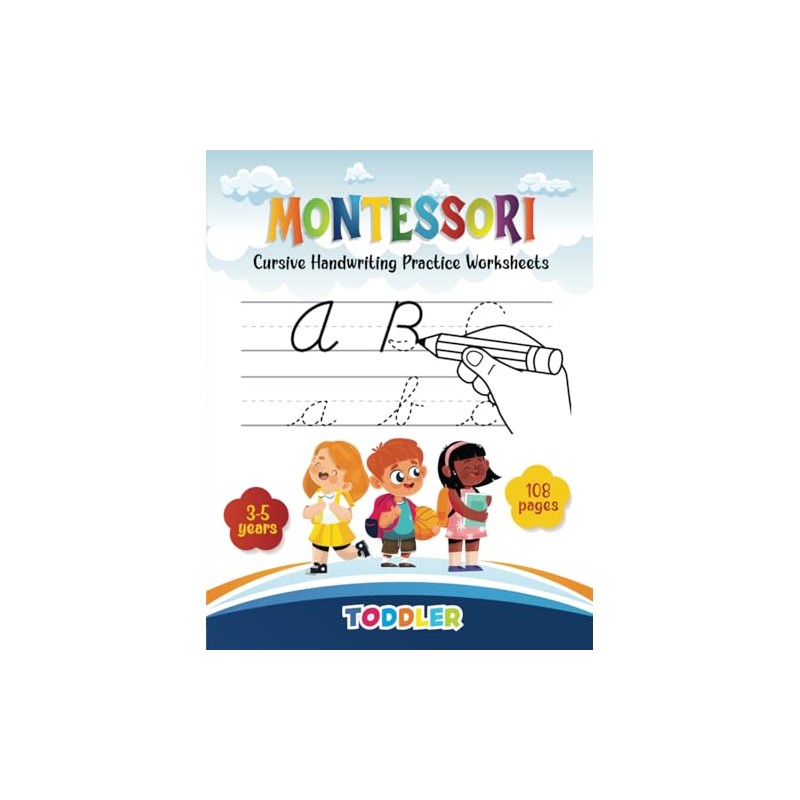 Montessori Activity Book For Preschool Cursive Handwriting Practice Worksheets: Montessori Preschool Kindergarten Cursive Handwriting Practice ... writing for kids ages 3-5 Cursive letters