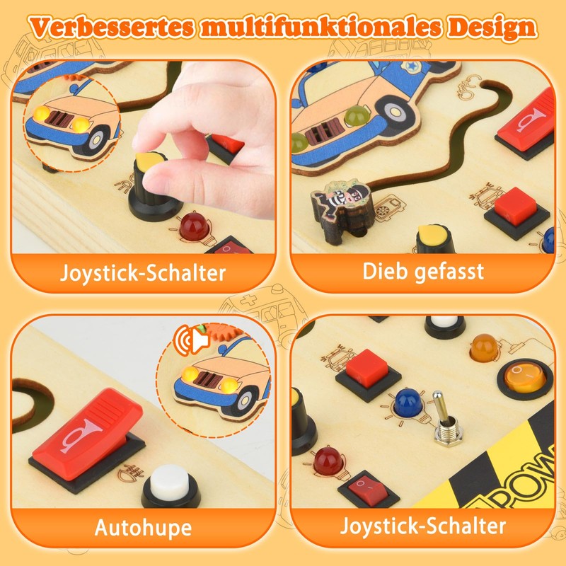 Montessori Busy Board, Montessori Toy from 1 Year, Busy Board with 8 Switches, Activity Wooden Toy LED, Motor Skills Toy for Babies and Children from 1 2 3 4 Years
