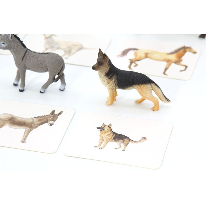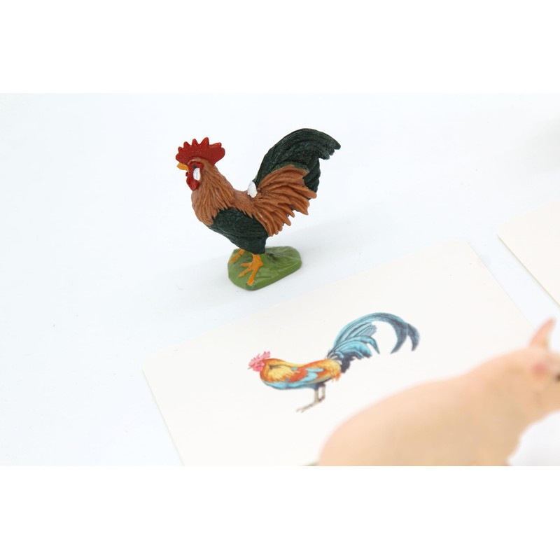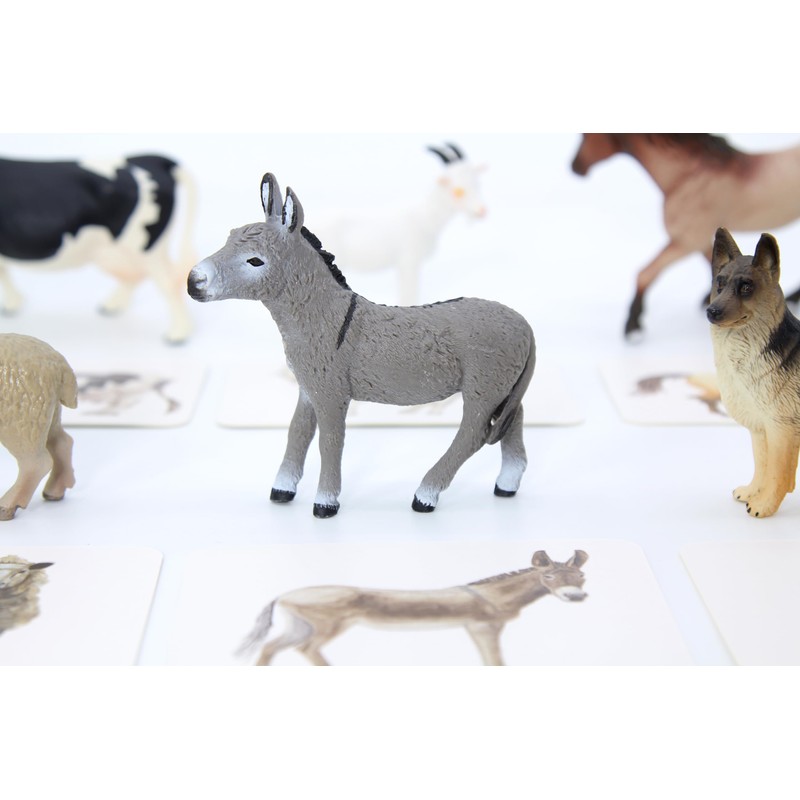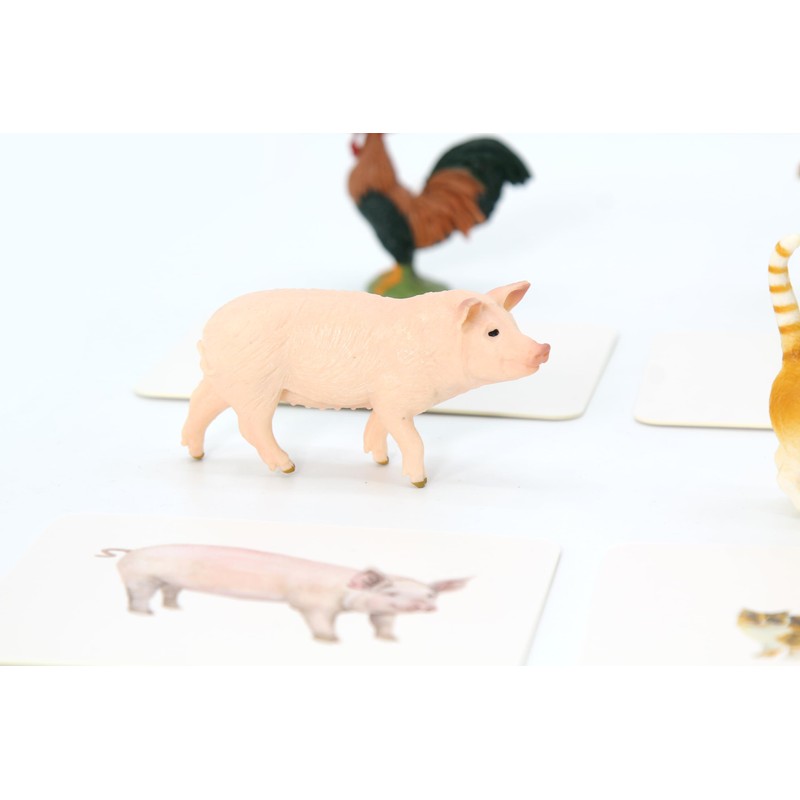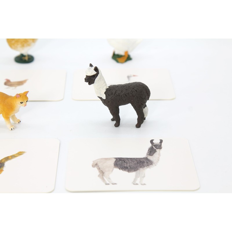 Montessori Language Materials Objects with Similar Cards 12pcs Mini Farm Animal Replicas with Matching Picture Cards Preschool Science Education Matching Game