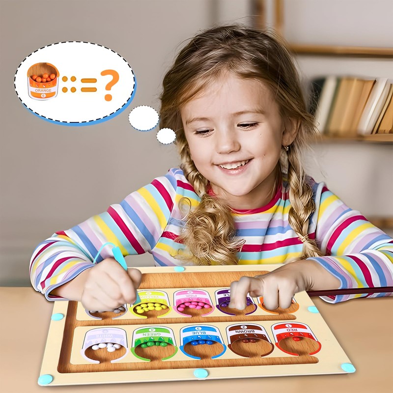 - Explore the fun number and colour labyrinth: each labyrinth has bright colours, and different coloured mazes correspond to numbers 1-10. With magnetic rods, children can draw magnetic balls that correspond to colours and numbers into the corresponding mazes and learn to recognise and count colours and numbers in an interesting way.