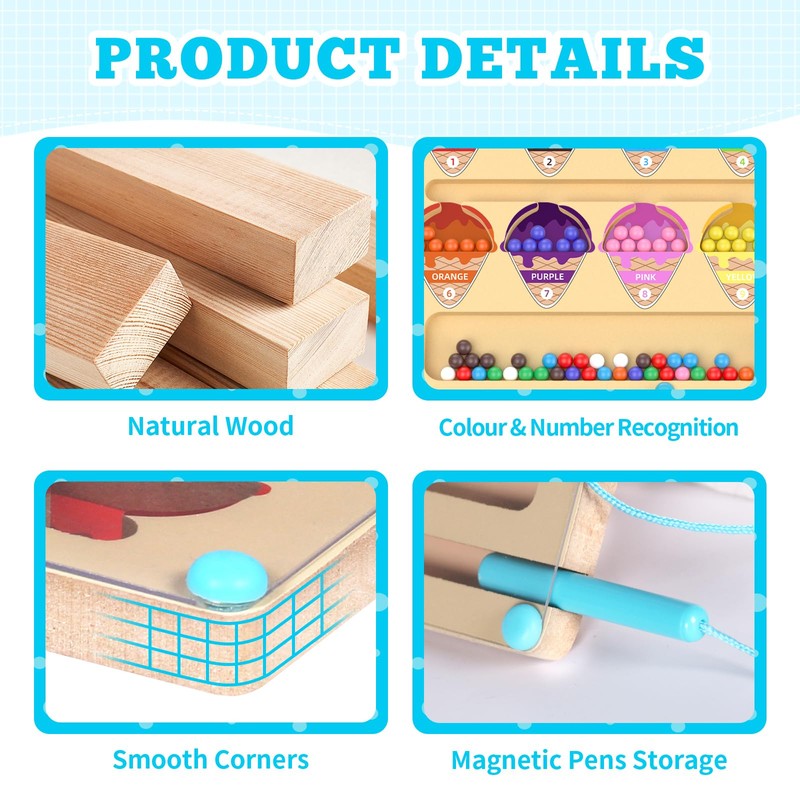 Montessori Toy, Magnetic Game Labyrinth Toy, Wooden Toy, Numbers and Colours, Educational Toy, Motor Skills Toy from 3 4 5 6 Years, Gift for Children, Boys, Girls
