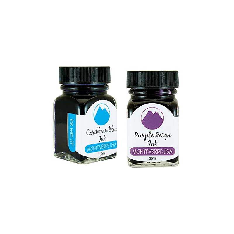 - Pack Contains the following Monteverde USA Ink Bottles: (1) Monteverde 30ml Caribbean Blue Ink Bottle. (1) Monteverde 30ml Purple Reign Ink Bottle.