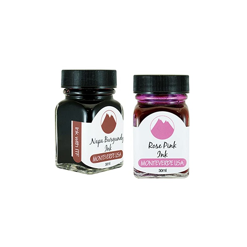 - Pack Contains the following Monteverde USA Ink Bottles: (1) Monteverde 30ml Napa Burgundy Ink Bottle. (1) Monteverde 30ml Rose Pink Ink Bottle.