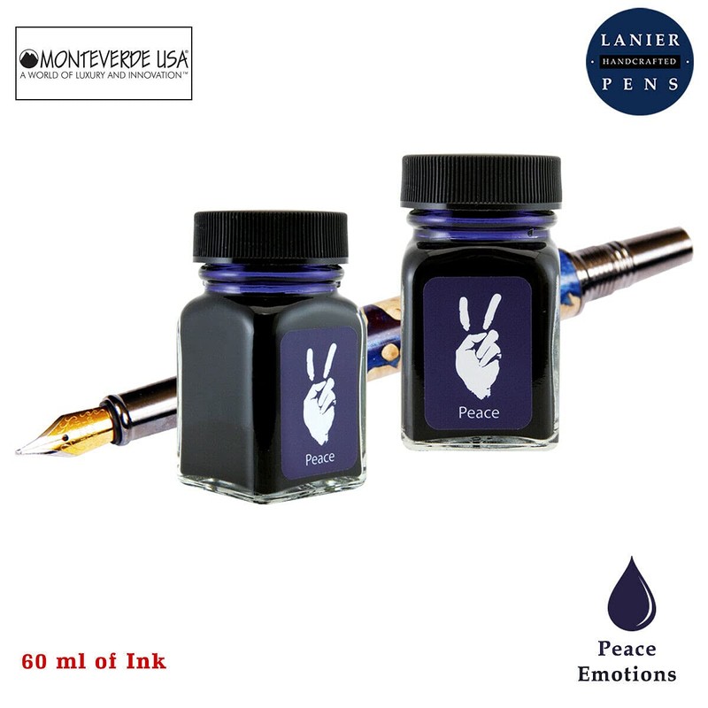 - With blue, we are able to reduce stress, increase unity, and better communicate our needs, wants and desires. Those determined to gain insight, spiritual perspective or cohesion of mind and matter, surround themselves with this enlightening and strong color. Pack Contains the following Monteverde USA Ink Bottles: (2) Monteverde 30ml Peace Blue Ink Bottle.