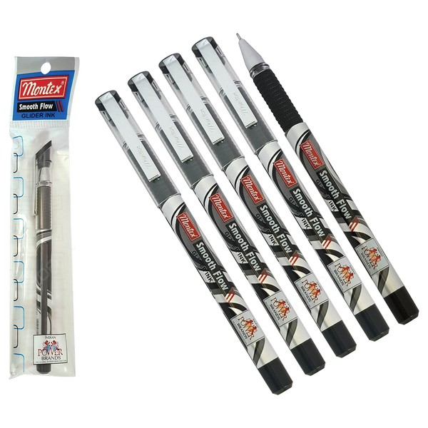 Montex 5 x 0.7mm Steel Tip Smooth Flow Ball Pen BLACK Ballpoint Pens Glider Ink