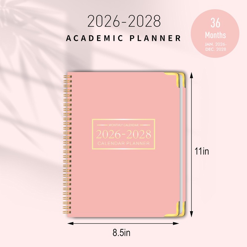 Monthly Planner 2026-2028, 2026-2028 Calendar 36 Months, 8.5" x 11", Jan 2026- Dec 2028,Metal corner protectors with Spiral Bound, 3 Years Academic Planner Perfect for School & Office for Women & Men