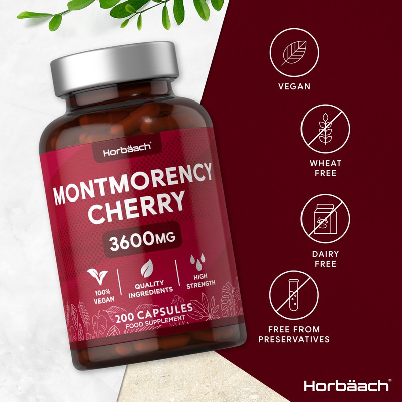 - HIGH STRENGTH: 3600mg Montmorency Cherry Extract per serving, enriched with Vitamins & Minerals that will give your body the extra daily boost needed.