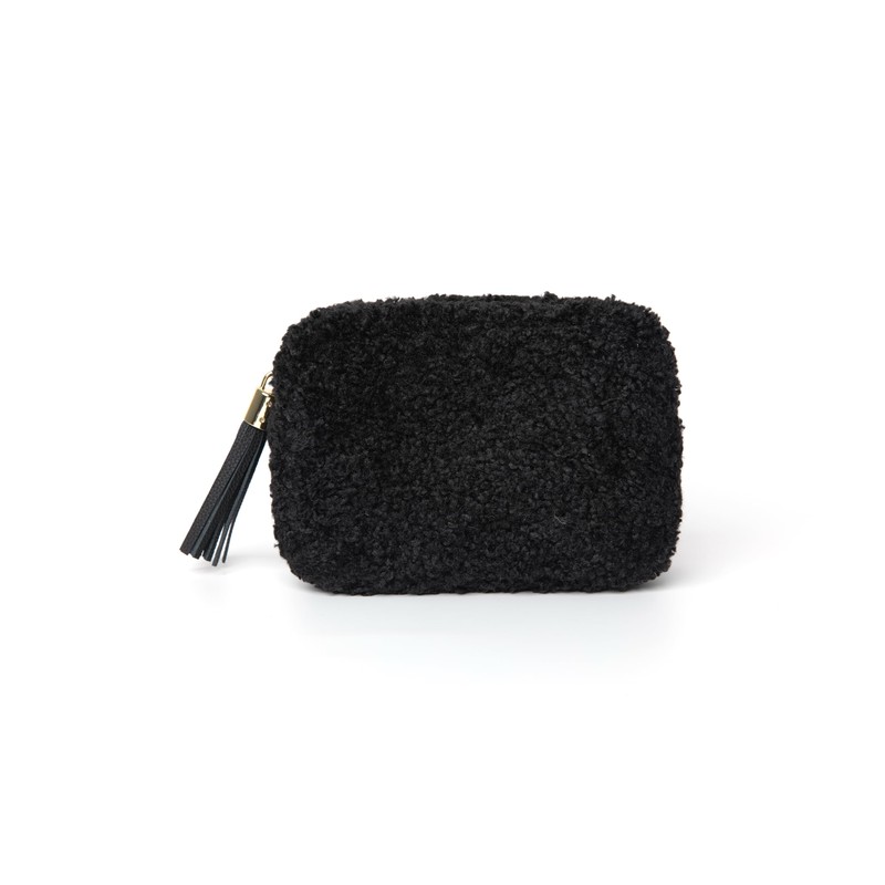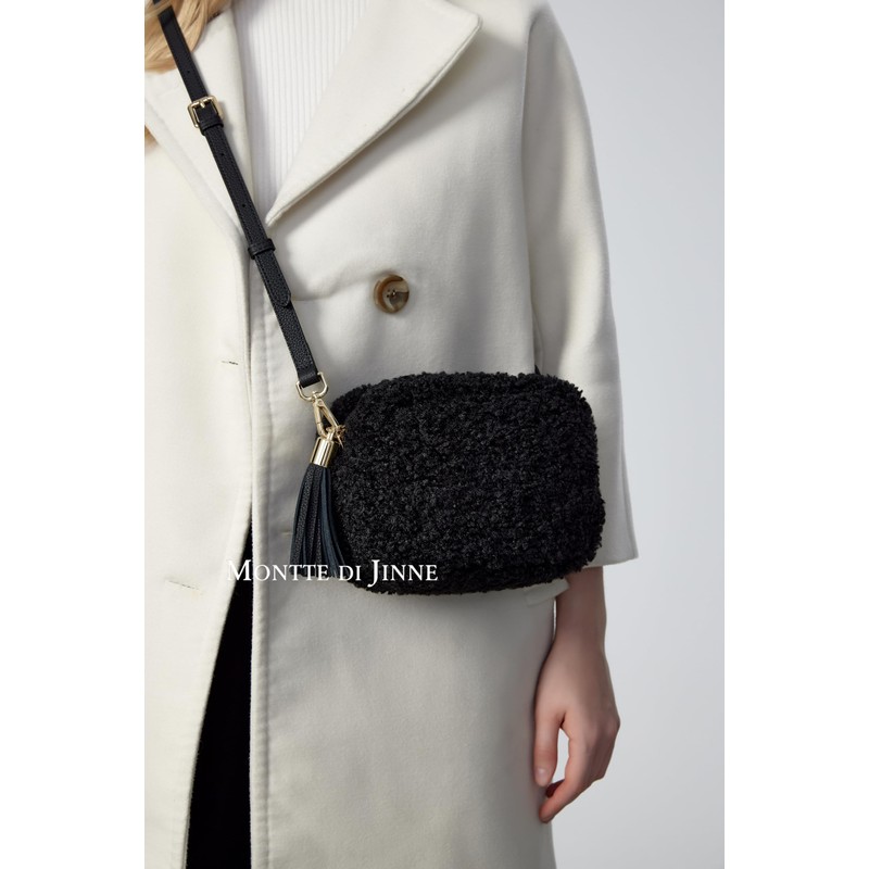 Montte Di Jinne Women's Premium Faux Shearling and Genuine Leather Crossbody Camera Bag Shoulder Handbag with Detachable Tassel Key Ring (BLACK)