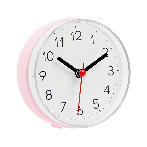 mooas 2WAY 静音 防水 浴室用時計 シャワー用時計 壁掛け時計 カチカチ音がしない静音タイプ 電池駆動型 吸盤付き壁取付型時計 キッチン時計 (ピンク)