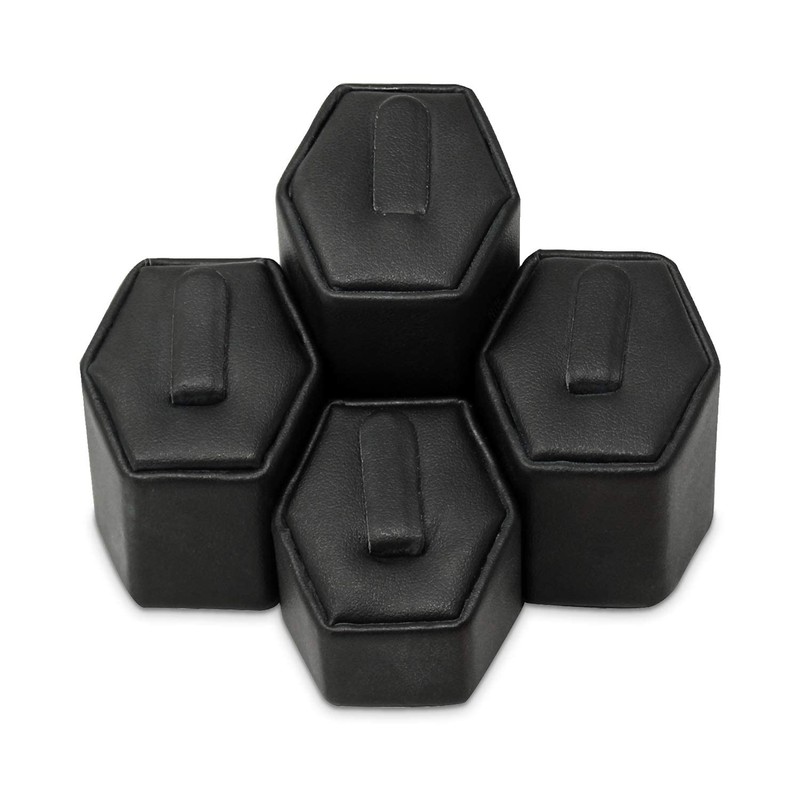MOOCA Jewelry Ring Stand Holder Display Set, Ring Holders for Jewelry Ring Organizer, Storage Jewelry Organizer Jewelry Stand Pedestals Display 4 Pcs Set, Black Faux Leather