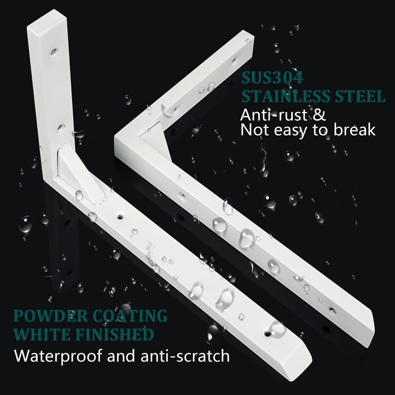 - PREMIUM MATERIAL: Each heavy duty shelf bracket is formed in one piece, white shelf brackets which are made of stainless steel, powder coated and white finished, which can prevent rust and scratches