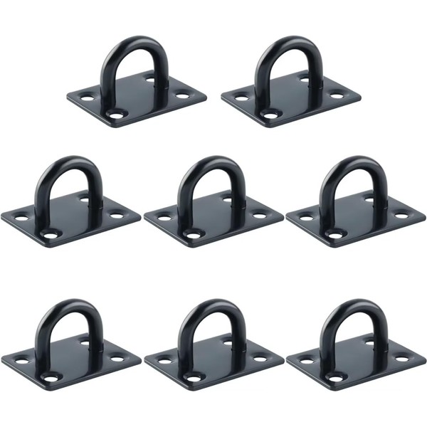 Mooche 8PCS Pad Eye Plate Suspension Ceiling Hook, Stainless Steel Black Heavy Duty U Shape Staple Ring Loop with Screws for Wall Ceiling Hanging