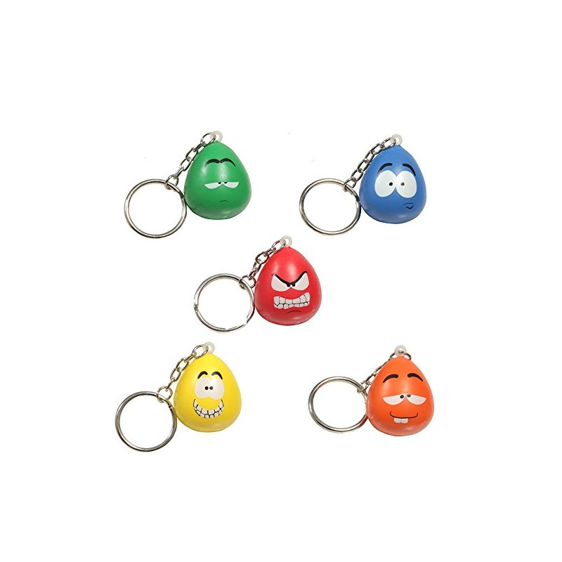 - Slow rise foam stress toy key rings - set of 5 (stressed, apathetic, happy, angry, and silly)