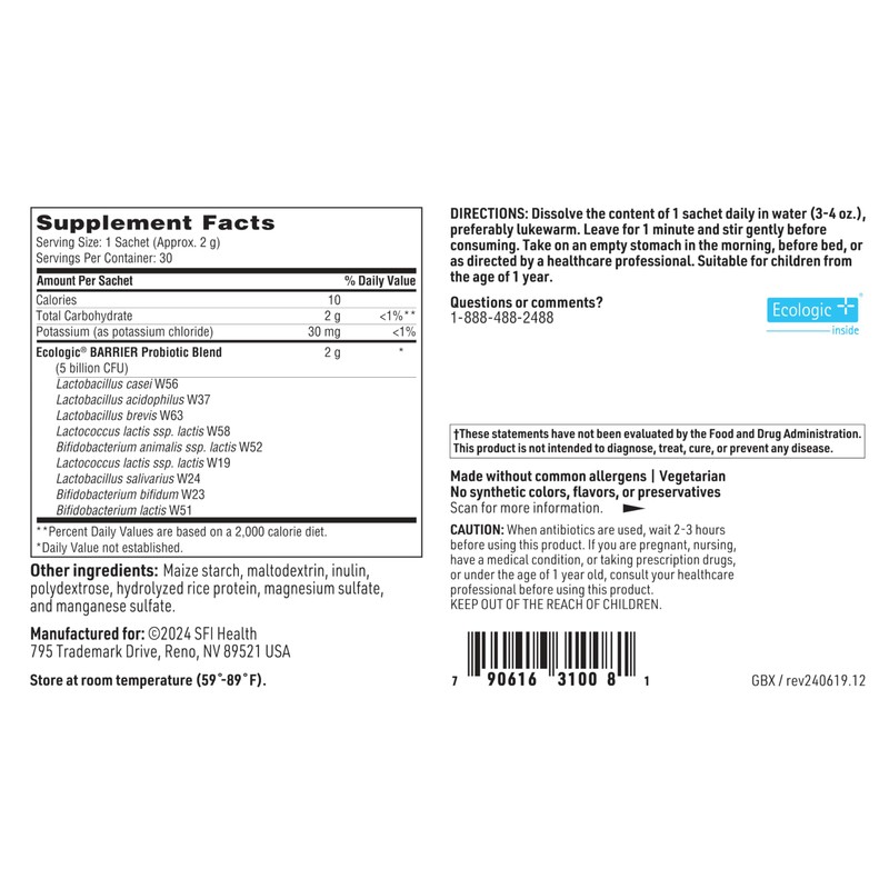 Klaire Labs SFI Health Probiotic Powder - Target gb-X with Bifidobacterium & Lactobacillus, Clinically Demonstrated to Promote Positive Mood, Shelf-Stable & Hypoallergenic for Men & Women (30 Packets)