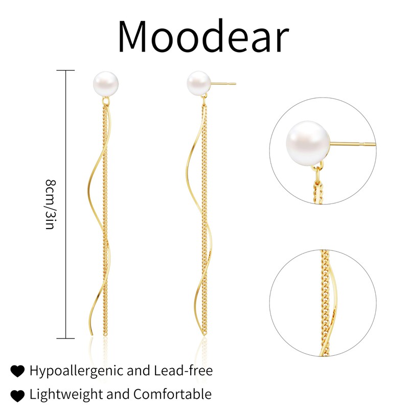 Moodear Dainty Pearl Dangle Drop Earrings 14K Gold Plated Chain Drop Earrings for Women Trendy Hypoallergenic Wedding Jewelry Gifts