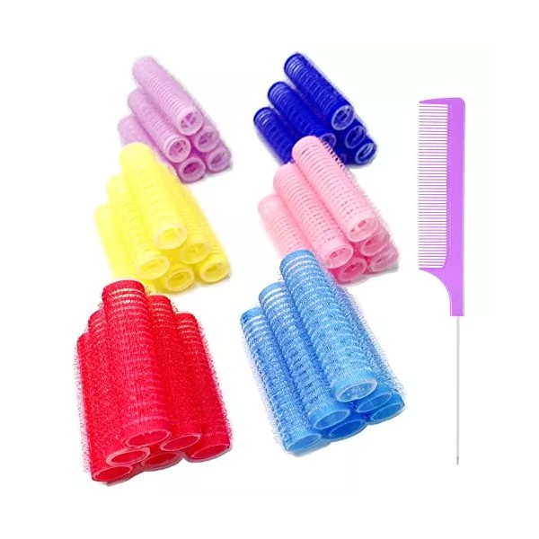Material de calidad: nuestros rulos de pelo autoadherentes están hechos de nailon de alta calidad, resistentes y duraderos, respetuosos con la piel y cómodo de llevar. Con 6 colores brillantes diferentes, cada color tiene 6 piezas, no se decoloran fácilmente, puedes utilizarlos con confianza durante mucho tiempo.