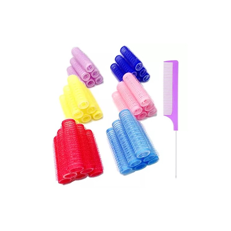Paquete MOODKEY: recibirás 36 rizadores de pelo pequeños autoadherentes en 6 colores (rojo, rosa, azul claro, amarillo, morado, azul oscuro) con peine de cola de rata en el paquete, que es suficiente para adaptarse a tus diferentes peluquerías necesidades.